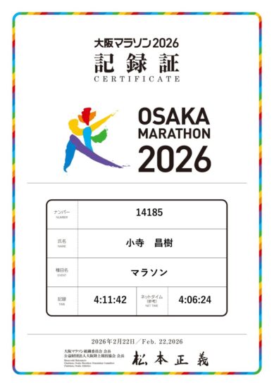 昨年の大阪マラソンが初マラソンで、サブ4(4時間以内にゴールすること)を達成しました。