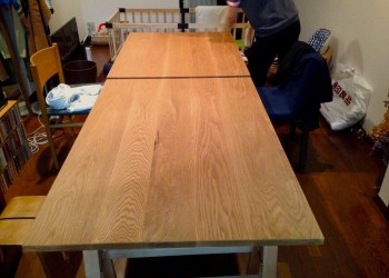 オークの天板だけ製作しました。 無垢のオークの天板を削って磨いてつるつるにします。 裏には木が反るのを抑える反り止めの金具を仕込んでいます。 天板だけですが、いい天板ができたと思います。 家具を買うのは勇気がいります。 … 続きはこちら