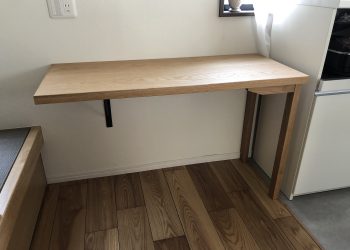 先日、隣町の御宅に据付のデスクを納品、取り付けしました。 凝ったことはせずシンプルなデザインで寸法通りに作ったデスク、左側は小上がりになっていて床下の引き出しが出てくるので、脚があると具合が悪くなるので大きめの棚受けで支 … 続きはこちら